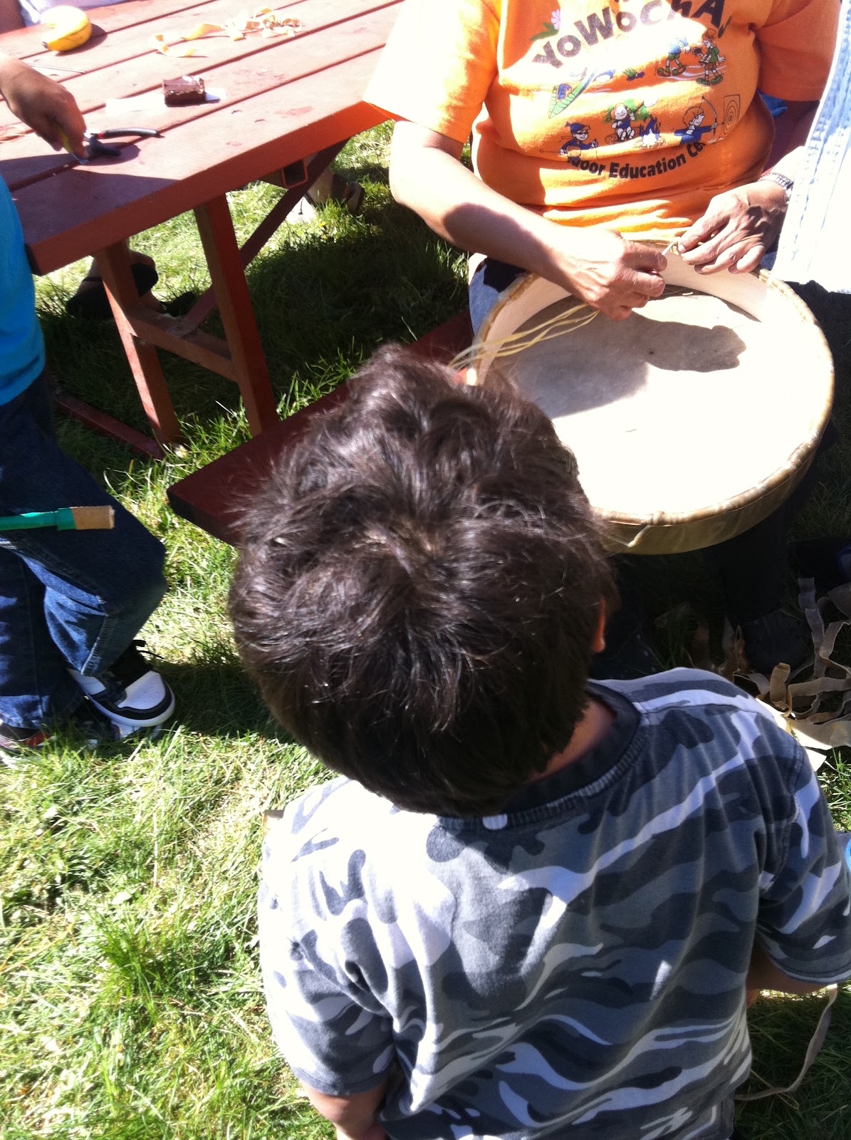 We had an opportunity yesterday to take the boys and have an elder teach them how to make a drum. It was a very informative process which we loved and the boys both LOVE their drums. Now we just need to find someone to teach them native drumming!
